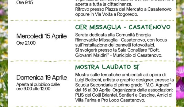 CER Missaglia – Casatenovo Serata dedicata alla Comunità Energia Rinnovabile Missaglia – Casatenovo, con focus sull’installazione dei pannelli fotovoltaici. Mercoledì 15 aprile ore 21.00 presso …