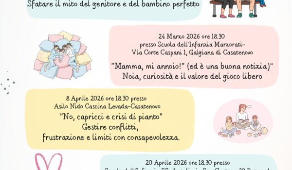 Prende il via a Casatenovo il percorso formativo “Genitorialità Consapevole e gestione del conflitto”, un progetto dedicato ai genitori di bambini nella fascia 0-6 anni, …