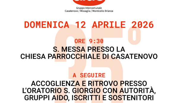 Celebrazione 35° anno della Fondazione del Gruppo Intercomunale A.I.D.O. di Casatenovo – Missaglia – Monticello Domenica 12 aprile 2026 Ore 9.30 S. Messa presso la …