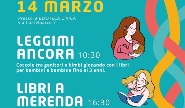 Sabato 14 marzo: Leggimi ancora dalle ore 10.30 alle 12.00 incontro per bambini da 0 a 3 anni; Libri a merenda dalle 16.30 alle 18.00 …