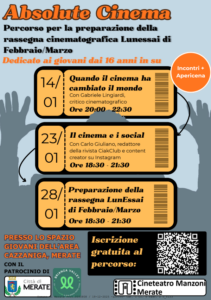 L’incontro finale sarà volto alla programmazione, assieme a tutti i partecipanti, della rassegna cinematografica d’autore di febbraio e marzo trasmessa dal Cineteatri Manzoni di Merate.