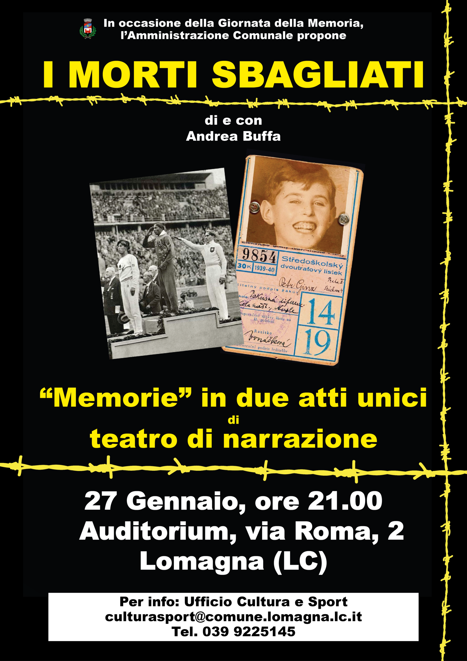 In occasione della Giornata della Memoria, l’Amministrazione Comunale propone lo spettacolo di teatro di narrazione e teatro civile “I Morti sbagliati” di e con Andrea Buffa.