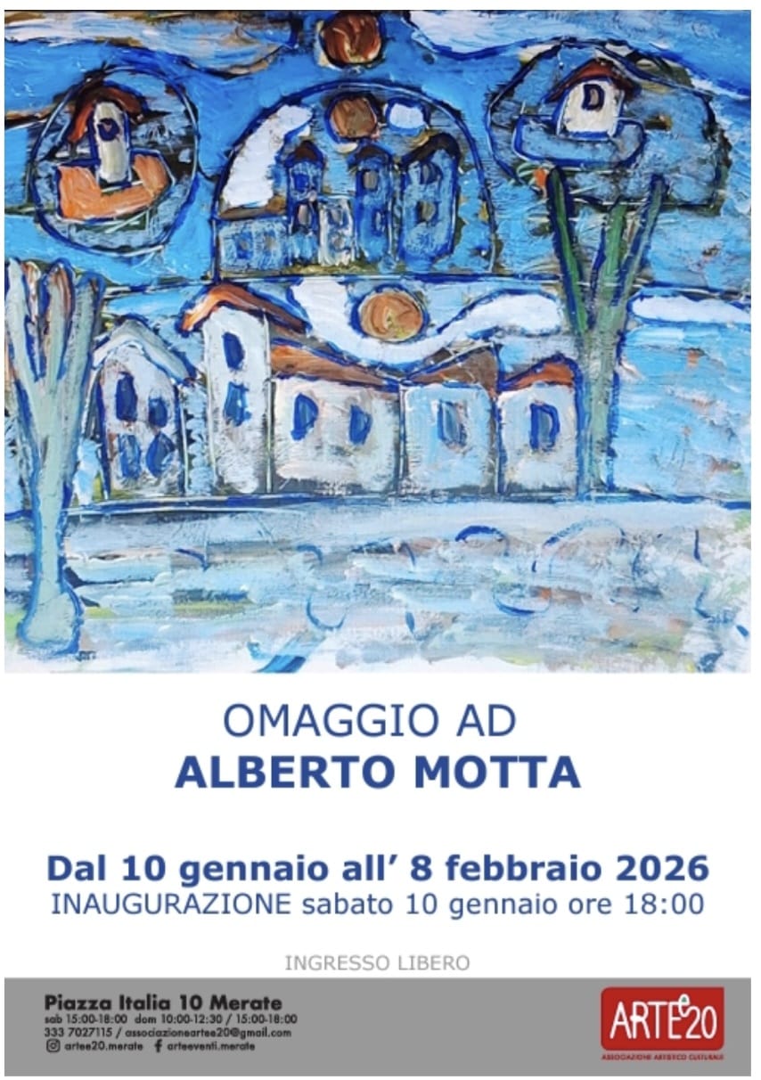 L’associazione Arte20 propone la mostra “Omaggio ad Alberto Motta” che si terrà presso la sede dell’associazione in Piazza Italia dal 10 gennaio all’8 febbraio 2026.