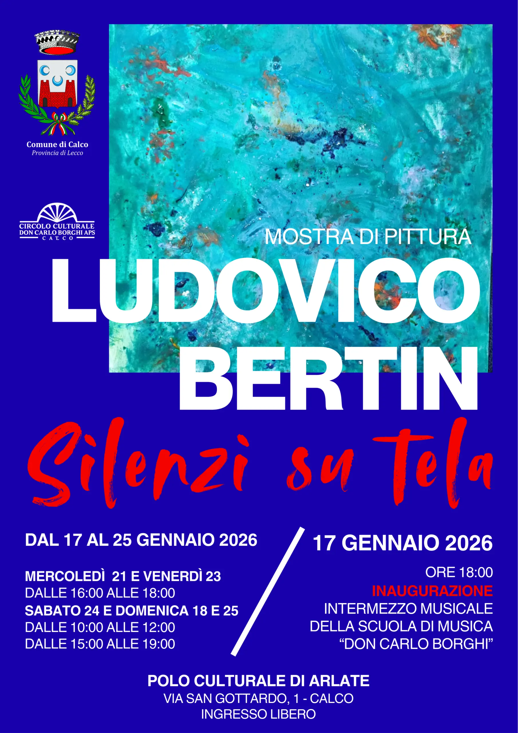 Il Polo Culturale di Arlate ospita, dal 17 al 25 gennaio 2026, la mostra di pittura Silenzi su tela dell’artista Ludovico Bertin.