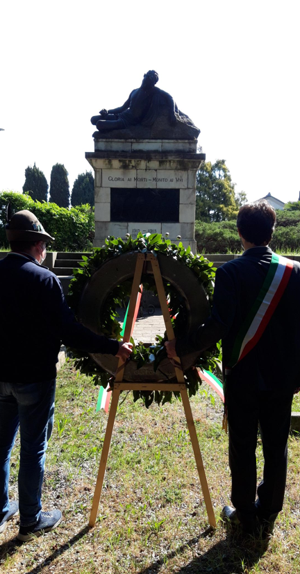 Il monumento fu eretto nel 1931 a ricordo dei Caduti della Grande Guerra, in seguito dedicato ai caduti di entrambe le guerre mondiali. Si noti come l'artista non metta in evidenza nessun segno militare, nessun simbolo di vittoria, solo un ragazzo nudo che giace morto su una roccia sopra un lenzuolo che lo ricopre in parte, come un sudario.